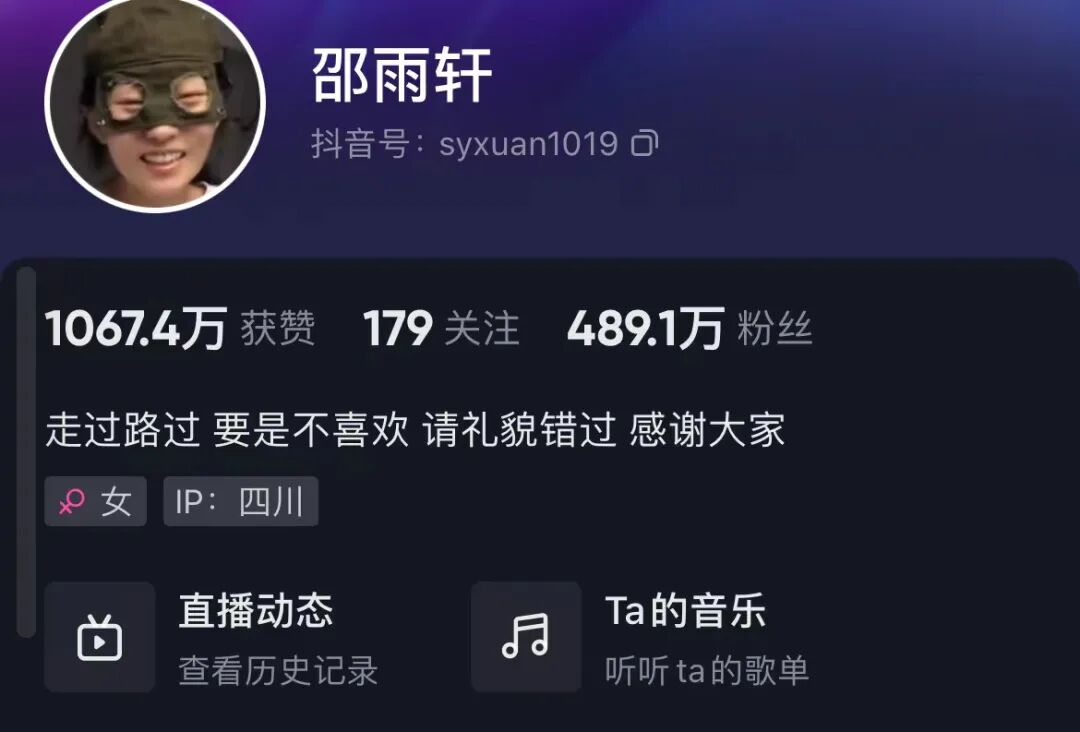 @邵雨轩 抖音主页截图