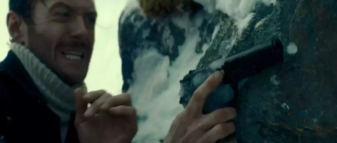 雪山上,德军飞机在背后对他扫射,进而引起雪崩。