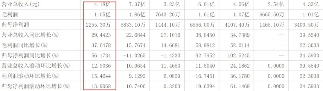 先说最近换防的朗诗绿色生活。从增长来看,朗诗绿色生活表现还算可以。营收4.18亿元,同比增加29.44%,虽然不及2020年及以前,但至少比2021年要高。毛利润、归母净利润的增长都高于营收增速,分别是37.65%、56.17%。