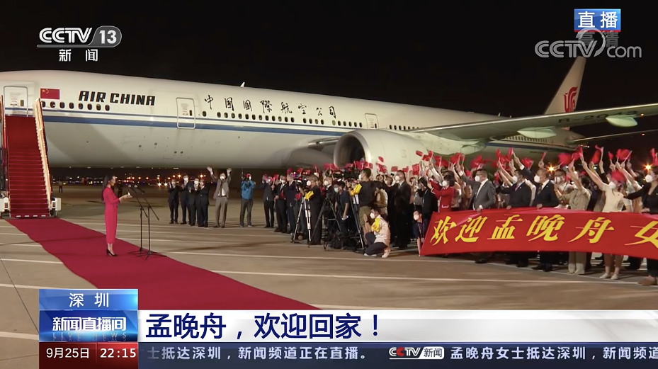 9月25日,中国公民孟晚舟乘坐中国政府包机返回祖国。这是党中央坚强领导的结果,是中国政府不懈努力的结果,是全中国人民鼎力支持的结果,是中国人民的重大胜利。