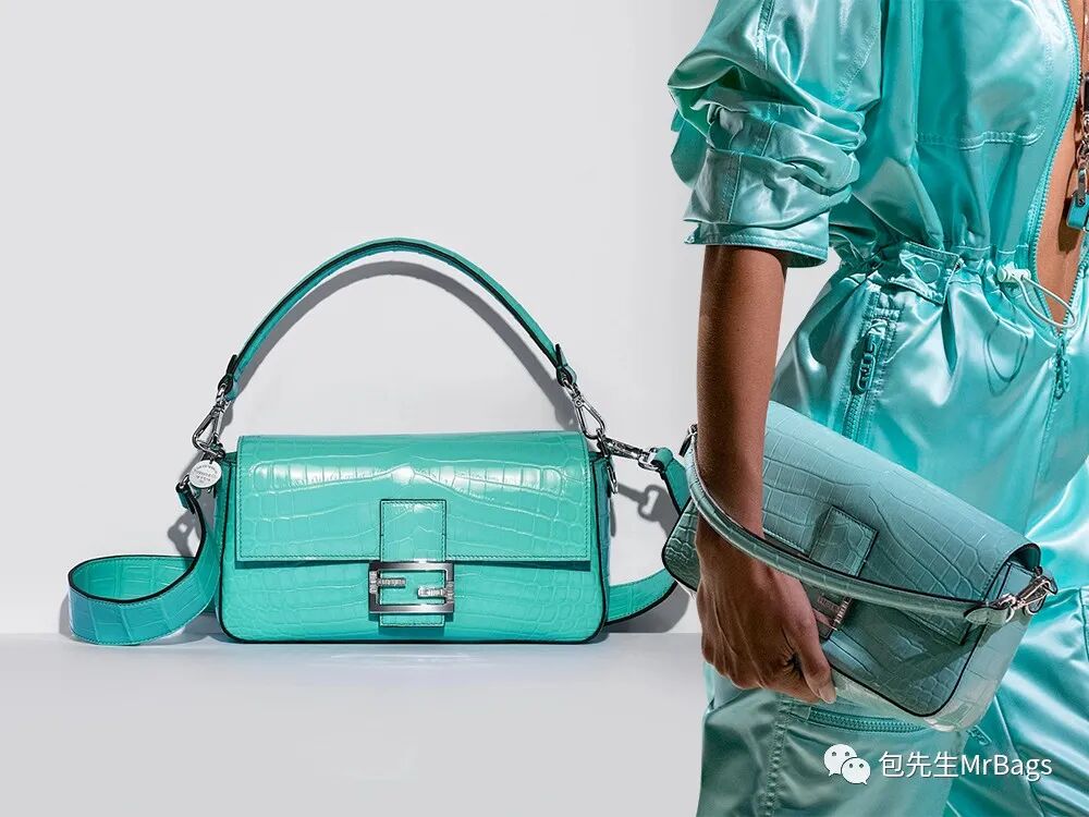 而这个系列更重磅的一款包,就是这只Tiffany蓝鳄鱼皮Baguette!