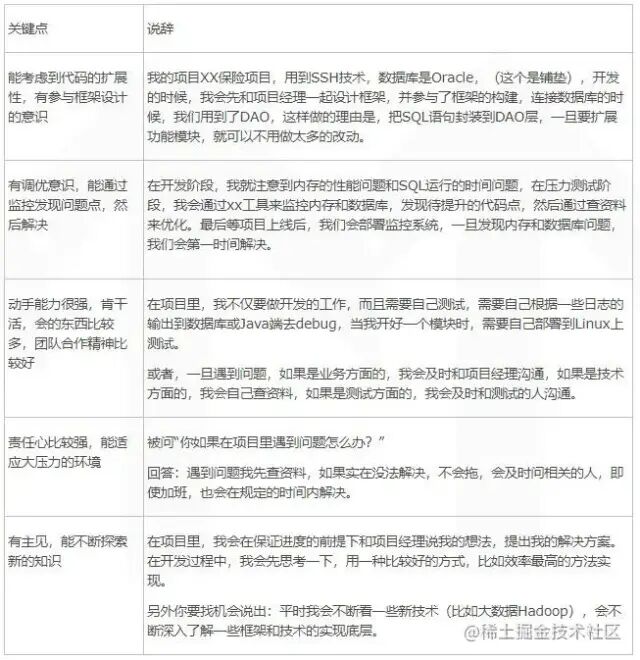 不少人是拘泥于“项目里做了什么业务,以及代码实现的细节”,这就相当于把后继提问权直接交给面试官。下表列出了一些不好的回答方式。