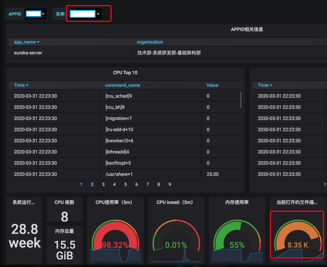 2020 年疫情爆发后的几个月后,掌门教育的微服务实例数比去年猛增 40% ,基础架构部乐观的认为注册中心 Eureka 服务器可以抗住该数量级的实例数规模, Eureka 服务器在阿里云 PROD 环境上执行三台 8C16G 普通型机器三角结构型对等部署,运行了好几年都一直很稳定,但灾难还是在2020年3月某天晚上降临,当天晚上大概 9 点 30 分左右,其中两台 Eureka 服务器无征兆的 CPU 占用迅速上升到100%,同时大量业务服务掉线,告警系统被触发,钉钉机器人告警和邮件告警铺天盖地而来。基础架构部和运维部紧急重启 Eureka 服务器,但没多久,CPU 依旧没抗住,而且更加来势凶猛,打开的文件描述符数瞬间达到 8000+ ,TCP 连接达到 1万+ ,业务服务和 Eureka 服务器的通信产生大面积的 TCP CLOSE_WAIT 事件,且伴有大量 Broken pipe 异常。