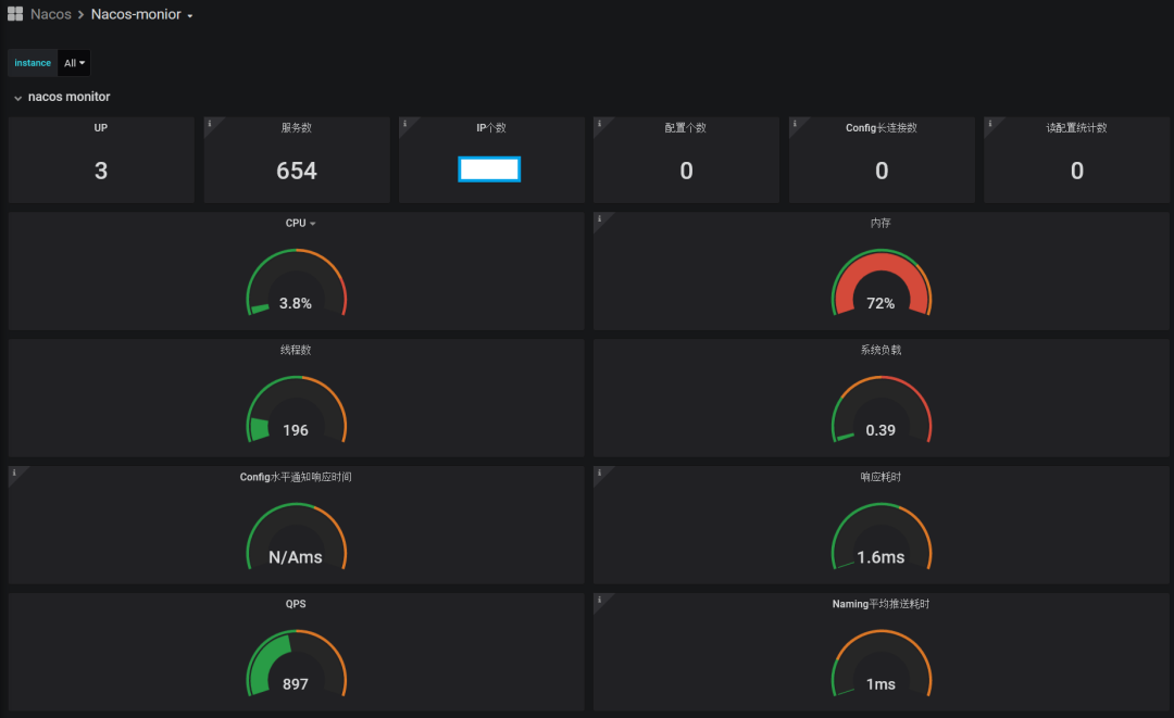 根据 Nacos 监控手册,结合 Prometheus 和 Grafana 监控 Nacos 指标。