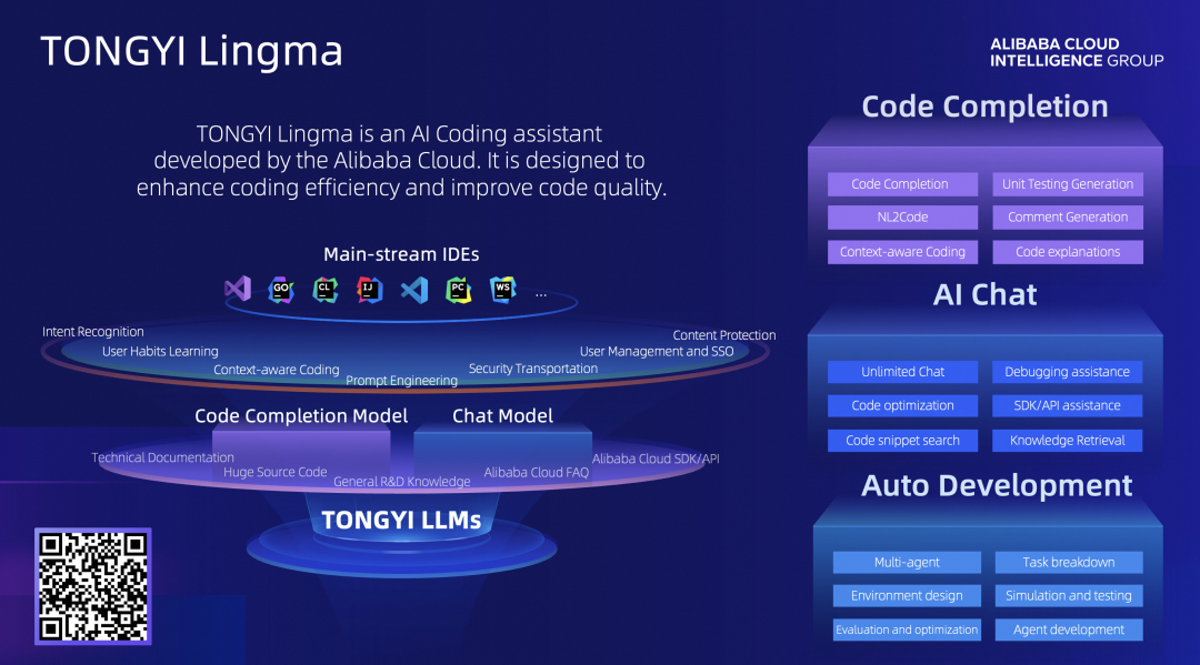 本论文成稿于 2023 年,当时正值大模型初露锋芒,大模型赋能软件研发正在尝试中。通义灵码(前身:阿里云智能编码插件)的产品形态也正在从【下拉式行级补全+代码片段与文档搜索】进化到【大模型块级补全+大模型流式问答】。