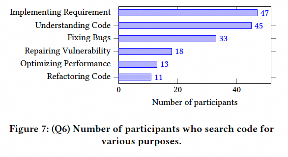 RQ5:开发人员使用代码搜索的目的是什么?理解开发人员使用代码搜索工具背后的实际原因(Q6)。