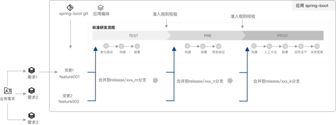 CI/CD 代码管理与流水线的集成- 一份代码,多地部署我们遵循云原生包括其 12 因素中的比较主流的理念来实践代码管理与持续化集成,即一份代码,一次编译,多地部署。代码编译后的产出物经过测试、预生产等环境的验证,最终晋级到生产环境,保证交付物的可靠性。![]()