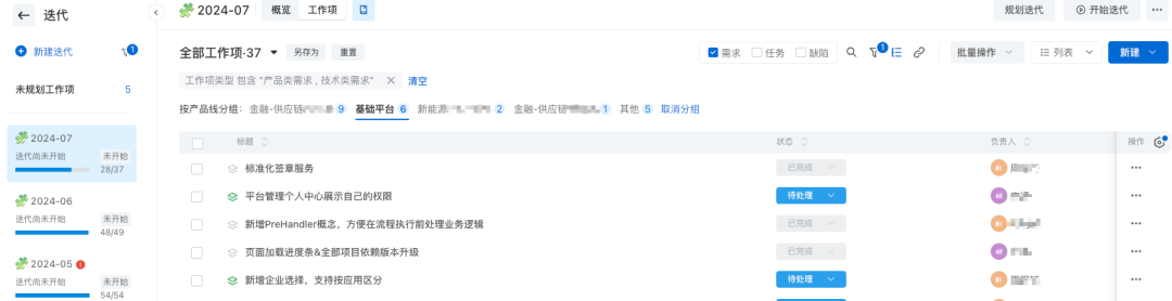 根据日常的实际情况,建立主题,拆分需求,细化任务。在团队内部充分利用分组与视图,实现对不同产品的管理。![]()