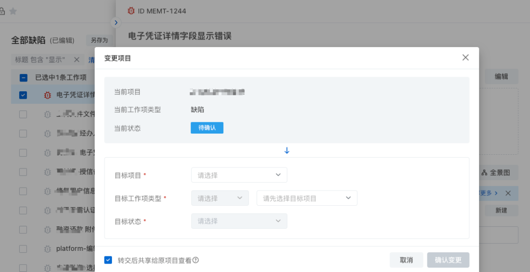 比如业务发现用户打开供应链业务软件存在部分字段显示与权限不符,向供应链团队提交缺陷。后经供应链团队核实,实际问题是基础平台团队在权限框架上存在缺陷。更甚至每次业务都把问题报给前端,但实际其中部分是后端的问题。这时候,我们一般由第一处理团队及时响应,检查缺陷原因。确认其他团队原因后,评论相关线索与证据。将任务变更至对应的团队,并分享本团队可见。有必要的话,会建立关联的任务跟踪,待问题解决后跟进验证。这样的话既记录了原始团队的工作情况,又全流程的记录过程数据。![]()