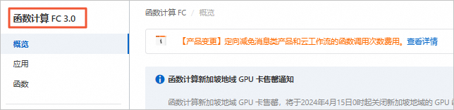 2. 请确认访问的控制台是函数计算 3.0,否则您需要在右上角单击体验函数计算 3.0。