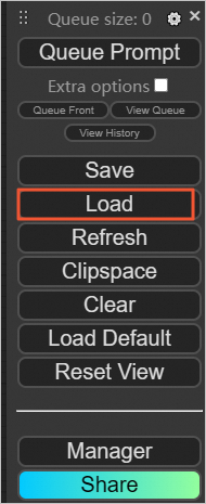 2. 在页面右下角,单击 Load,将下载并解压后的 json 文件导入到 ComfyUI 中。
