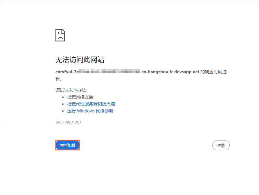 11. 首次打开 ComfyUI,遇到无法访问此网站情况,等待 10 秒左右单击重新加载。
