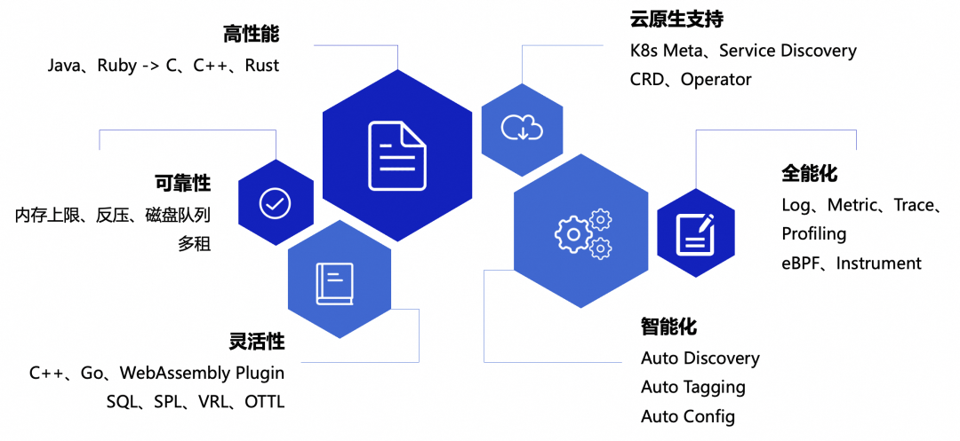 总结 iLogtail 的发展史和业界主流采集代理的发展历程,不难发现采集代理发展的技术趋势,主要有以下六点:1)高性能