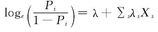其中Pi表示第i个个体升上大学的概率,λ表示常数,Xs表示第s个变量,λs为Xs对应的系数。