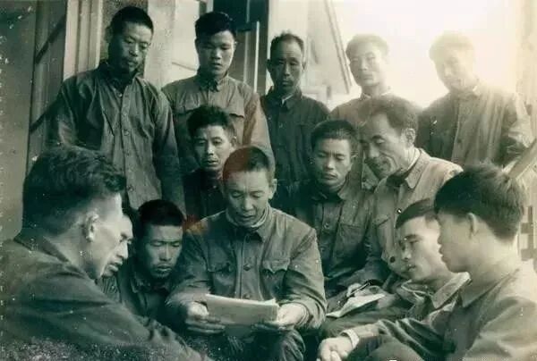 图为“农业学大寨”时期,公社干部们聚在一起学习会议文件。[图源:sohu.com]