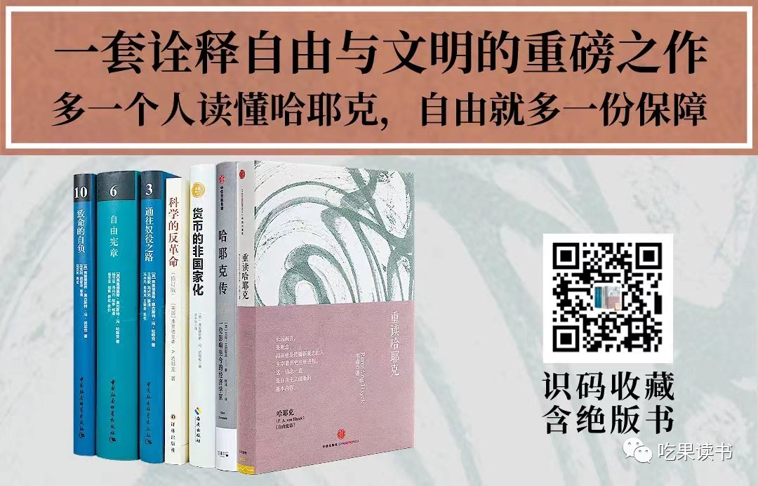 哈耶克用尽一生向世人证明:人类的繁荣、幸福和尊严来自个人自由,而不是任何集体主义;乌托邦体制践踏私产、无视基本人性,在无尽的匮乏、混乱与奴役之后,其结局是经济崩溃、道德沦丧、真理消亡……哈耶克不仅准确预言了未来,还把自己变成历史的一部分——他身后所发生的每一场悲剧和灾难,都在为他的思想做注脚。先知注定是孤独的,这成就了先知的伟大,却也成为时代的不幸。一百年来,在每次重大的历史关口,中国都错过了机遇。错失了过去,不应再错失未来,我们应学习并传播先知的思想,借此把握好未来,让未来不再充满遗憾。为此,吃果读书诚意推荐“哈耶克作品集”,多一个人读哈耶克,自由就多一份保障。在所有经济学家中,哈耶克可称得上是一大“怪胎”:他虽然从骨子里认为自己首先是一位经济学家,但他在外人的眼里更是一位伟大的政治思想家和法学家,而且他还深度涉猎心理学、社会理论、系统论等领域。作为一位深刻影响了,而且仍将影响人类思想及历史进程的思想家,哈耶克的作品,早已走出学术的象牙塔,成为所有热爱自由,忧思人类命运人士的案头必备书。然而,哈耶克的作品,犹如他当年的命运一样多舛。先知书店经多方努力,为书友奉上目前中文版仅有的哈耶克六部作品(含独家)。感兴趣的书友可识别下图二维码,一键收藏。