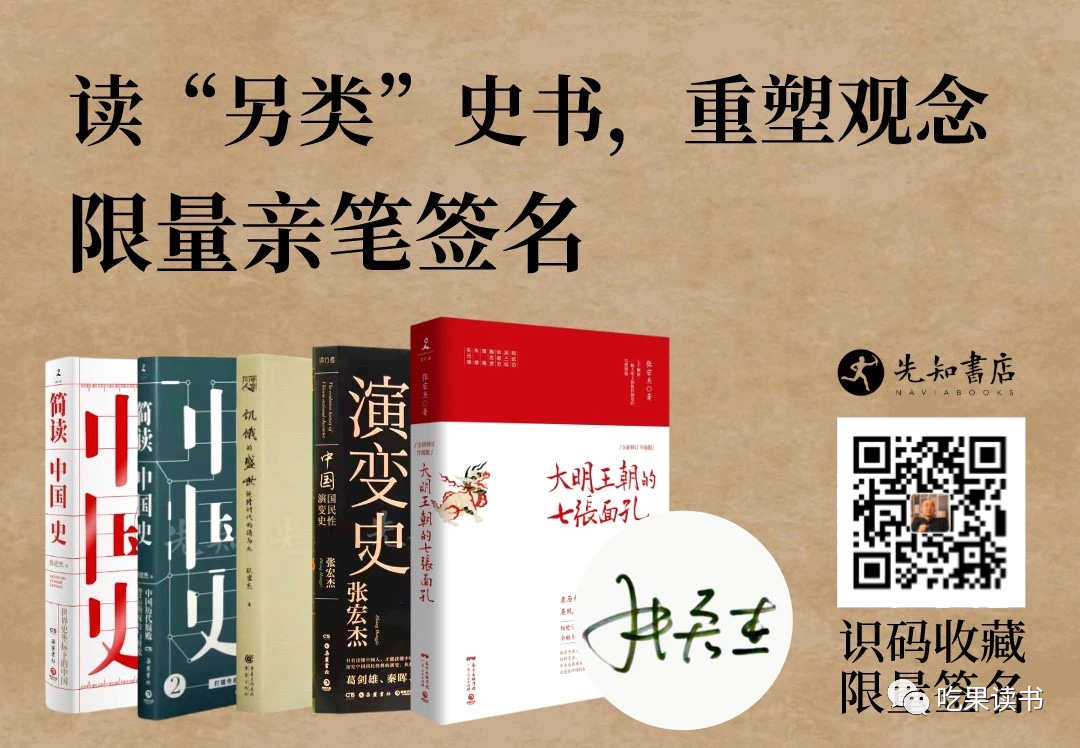 吃果读书诚意推荐“张宏杰作品集”。他看中国历史,以“长时间,远距离,宽视野”的解读方式,力图全方位呈现中国历史治乱循环背后的内在逻辑与外在动因。