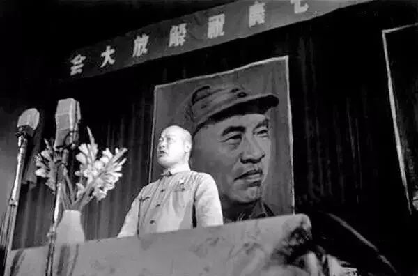 ▲1949年8月7日,上海,在胜利庆典大会上讲话的陈毅