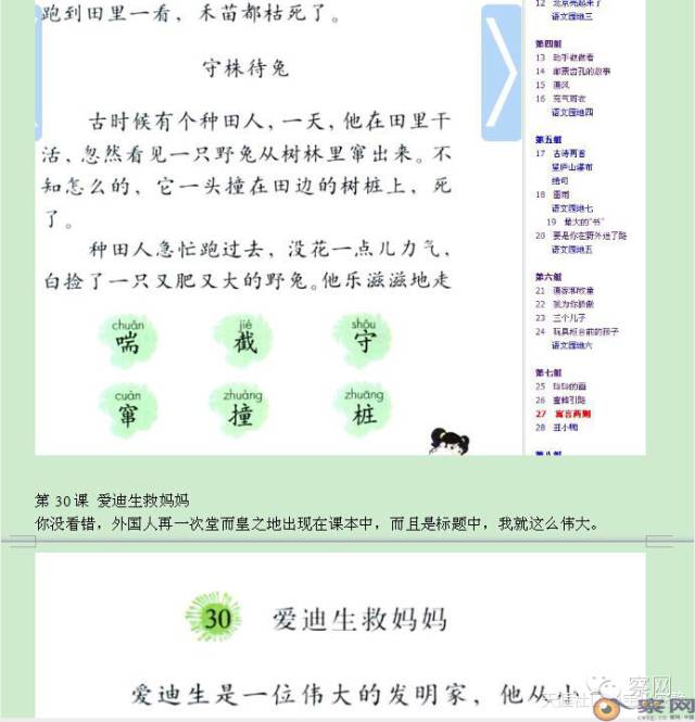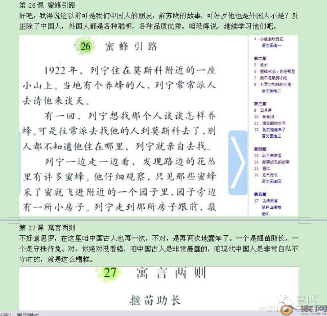 第26课 《蜜蜂引路》前苏联列宁小时侯的故事,可好歹他也是外国人不是?反正除了中国人,外国人都是各种聪明,各种品质优秀。咱没得说,继续学习他们吧。但接下来一篇就是中国的两个蠢笨的形象出来了,一个是揠苗助长,一个是守株待兔。