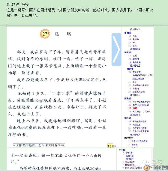 第27课 《乌塔》这是一篇写中国人在国外遇到个外国小朋友叫乌塔,然后对比外国人多勇敢,中国小朋友呢?嗯,自己想吧。