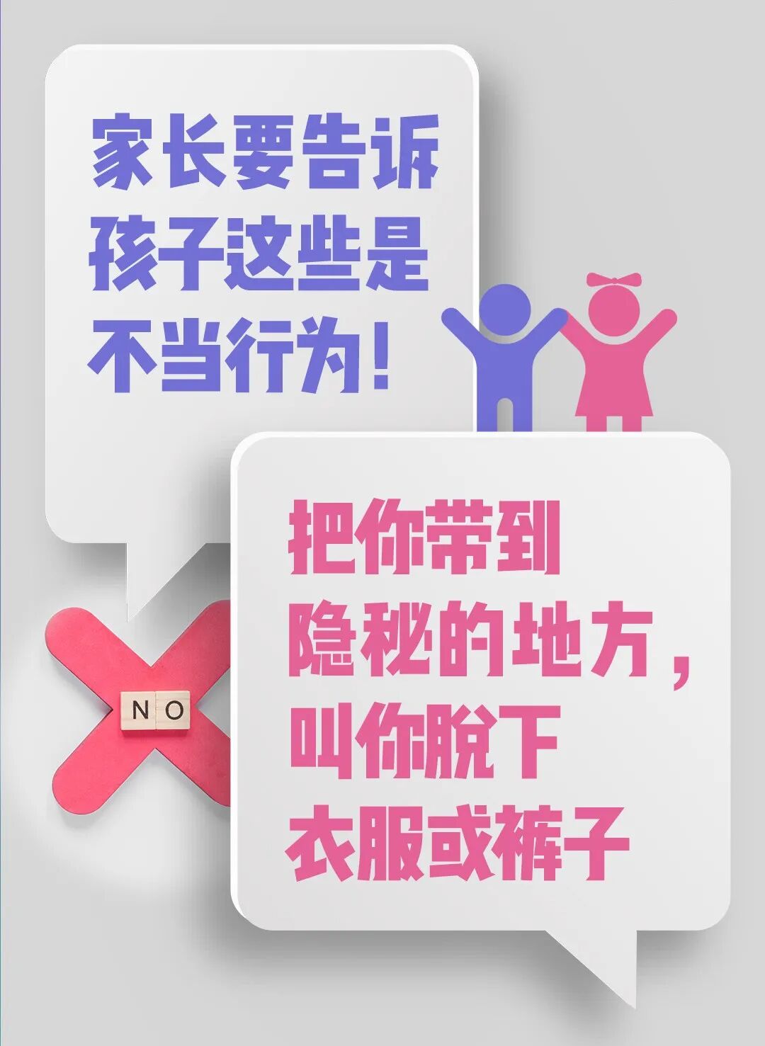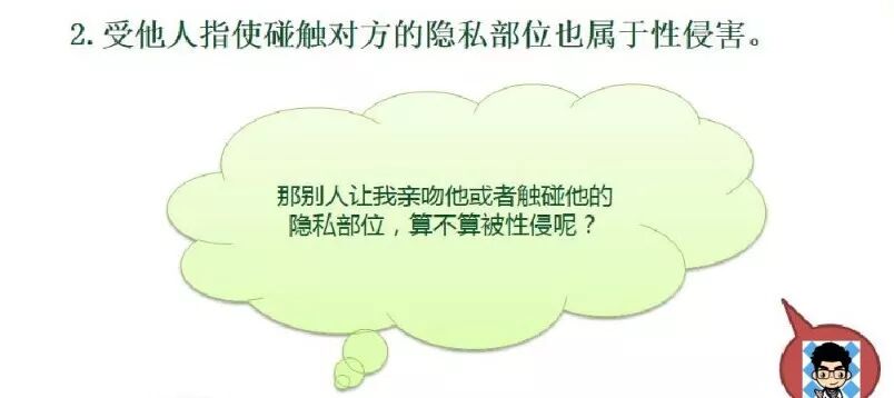 (平时衣服裤衩盖住的地方是不能给别人看,也不能给别人摸的,除了隐私部位,其实孩子的口唇、耳根、胸部、脖颈等都是他人不可以随意触碰的地方)
