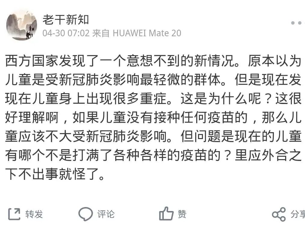 【西方医学对病毒是无药可治,却宣称未来还没出现的病毒有疫苗可以防治。以此推论西方医学的观点,疫苗对过去及未来传染病有效,可是对现在传染病无效。也就是看得到的现在不能处理,看不到的过去及未来却可以处理,这跟国王的新衣又有什么两样,但这种荒谬的观点,真的很多人相信。】