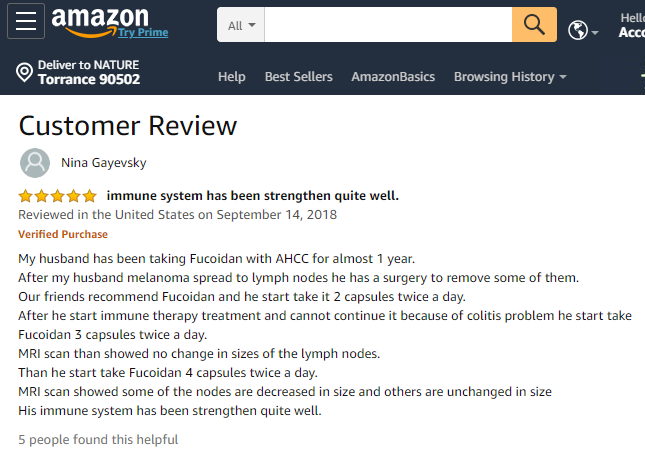 我的丈夫服用褐藻糖胶AHCC已近1年了。