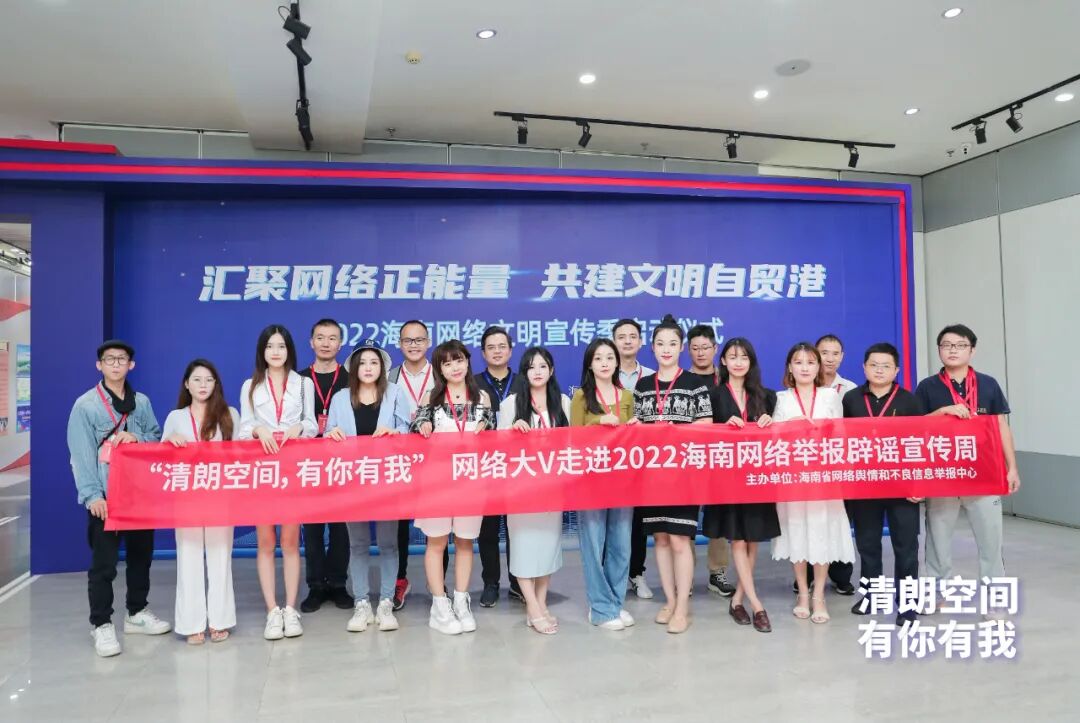 9月27日,由海南省委网信办举办的2022海南网络文明宣传季活动在海口正式启动,“清朗空间 有你有我”海南网络举报辟谣宣传周主题活动同期开展。活动邀请海南网络大V进行“线上+线下”网络举报和辟谣宣传,通过发起线上热点话题、开展主题创作、制作精美海报等多种形式,推动广大网民争做网络文明的引领者、争做网络安全的维护者,共同营造绿色清朗网络空间,助力海南自由贸易港建设。