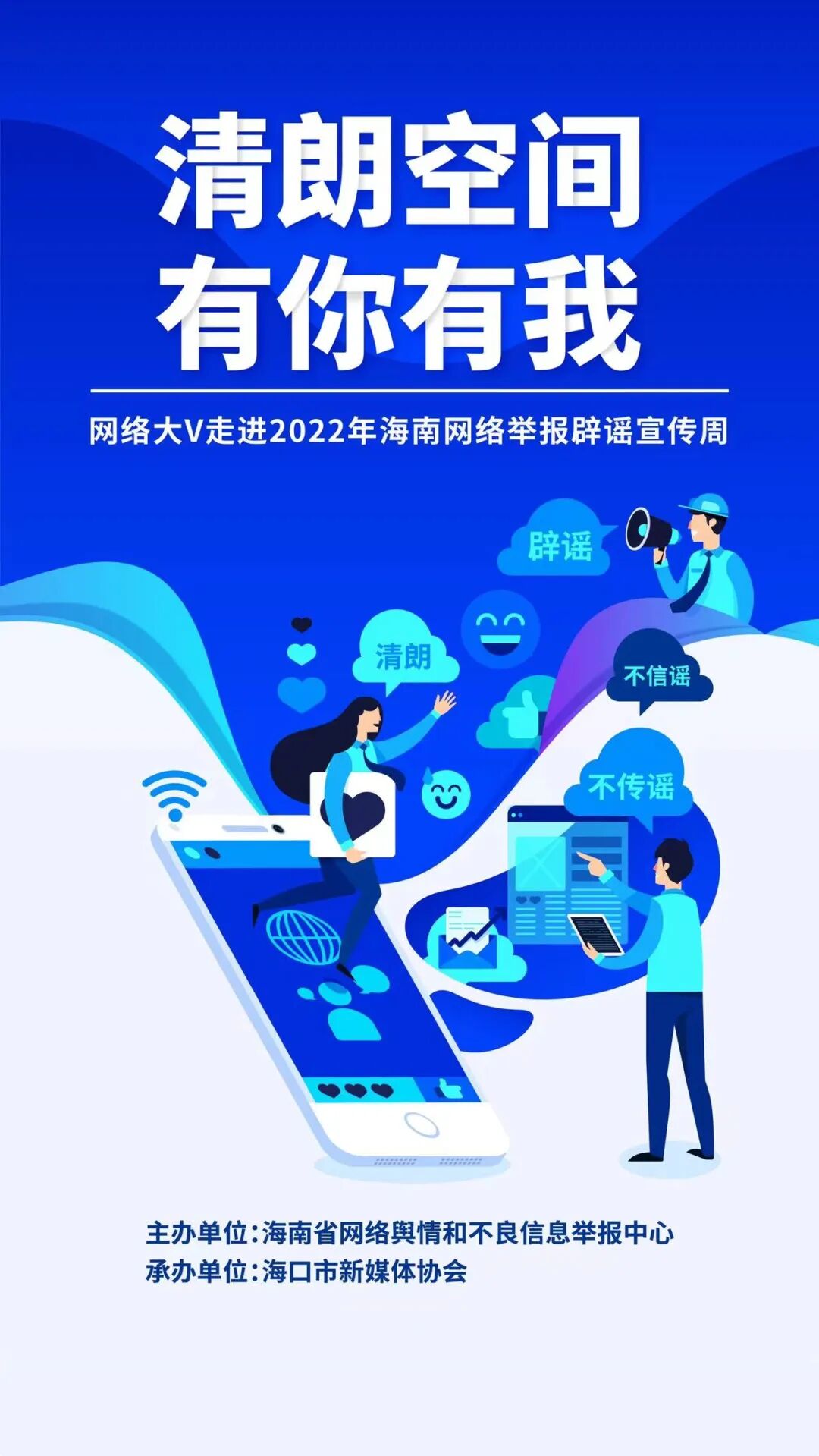 海南网络举报辟谣宣传周主题活动由海南省网络舆情和不良信息举报中心主办,海口市新媒体协会承办。