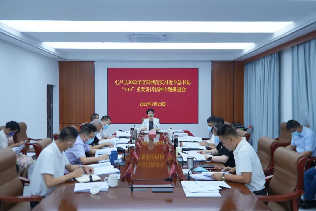 9月23日上午,县委书记凌云主持召开2022年度贯彻落实习近平总书记“4·13”重要讲话精神专题推进会,强调要深刻领会习近平总书记“4·13”重要讲话精神,以“严、细、深、实”的态度抓好各项任务事项落实,以优异成绩迎接党的二十大胜利召开。县长赵英杰出席。![]()