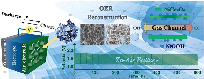 lTailoring charge and mass transport in self-reconstructed NiCo2O4 ensures synergistic improvement in Zn-air batteries.