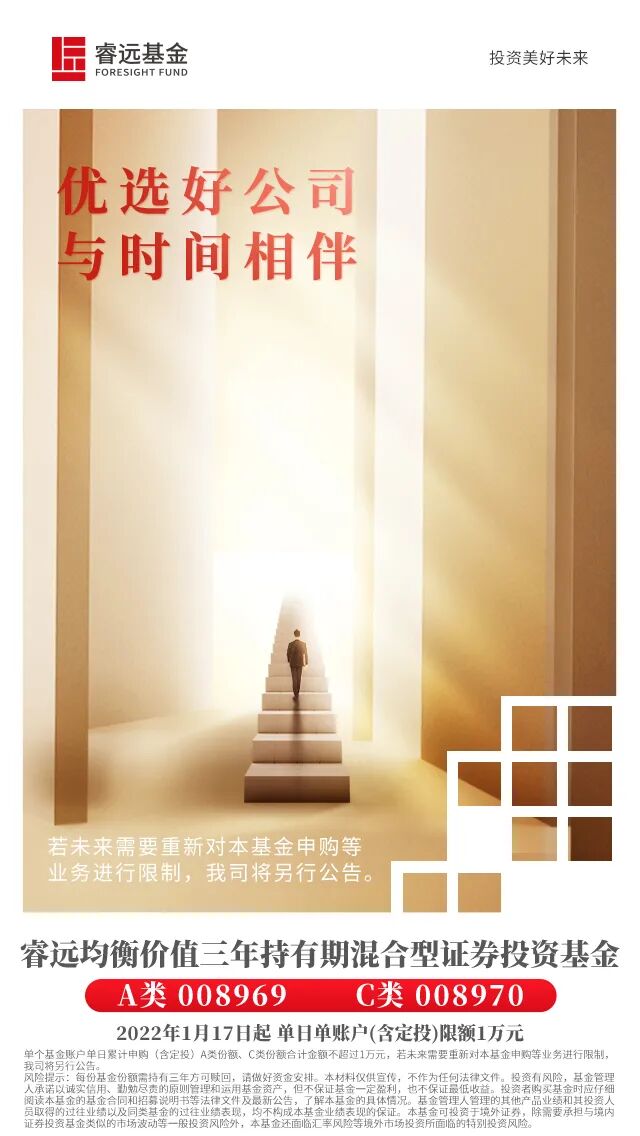 根据公告,自2022年1月17日起,睿远均衡价值三年持有混合限制申购及定期定额投资金额由1,000元调高至10,000元。