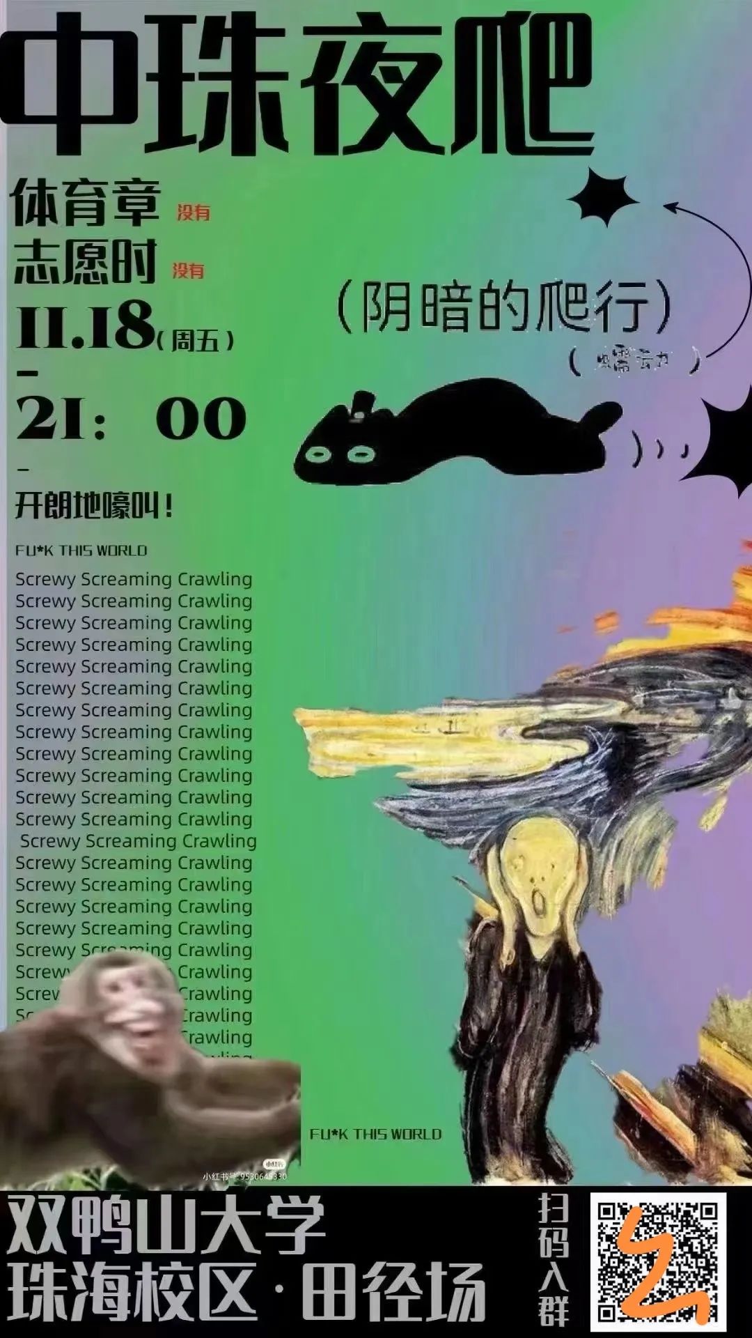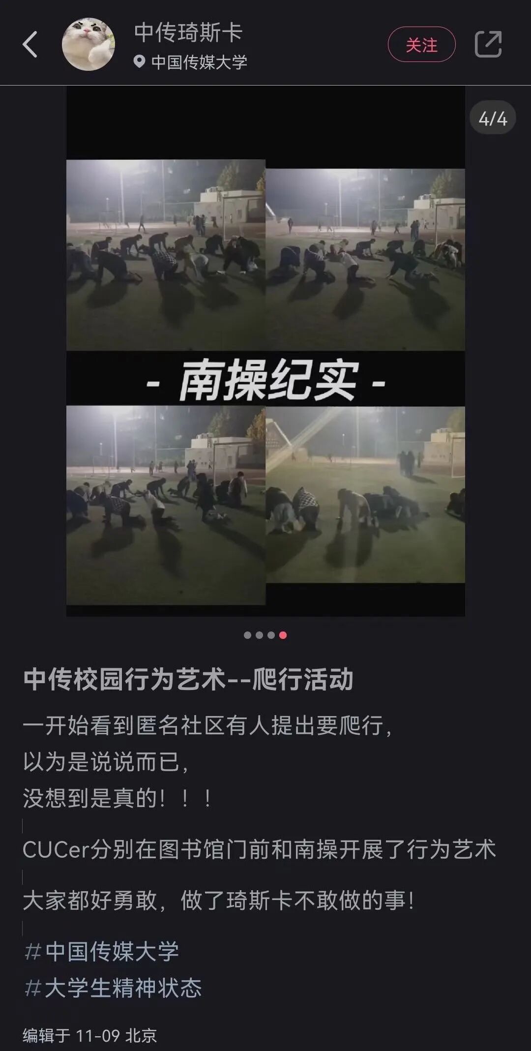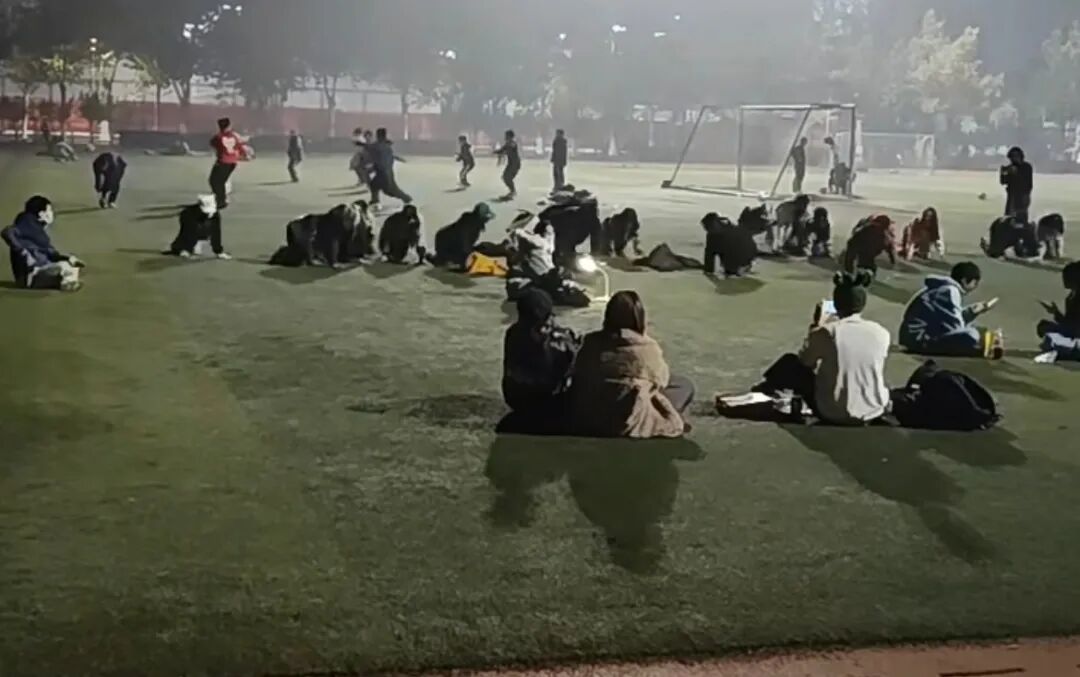 只不过,夜晚在大学校园的草坪上,爬行的人,站立的人,这画面一对比有点克苏鲁了......例如:爬行的人和旁边打太极的那一拨,一动一静鲜明对比