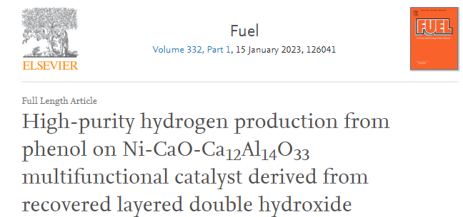 hydrogen production from phenol on Ni-CaO-Ca12Al14O33multifunctional catalyst derived from recovered layered double hydroxide, Fuel,