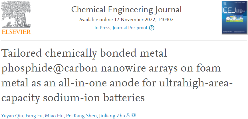 “Tailored chemically bonded metal phosphide@carbon nanowire arrays on foam metal as an all-in-one anode for ultrahigh-area-capacity sodium-ion batteries”