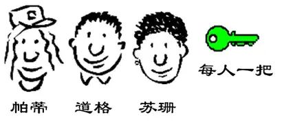 2.鲍勃把公钥送给他的朋友们----帕蒂、道格、苏珊----每人一把