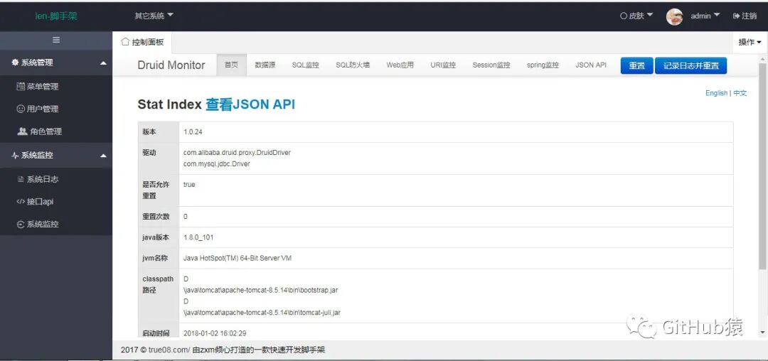 系统监控:系统日志、接口api、系统监控、可配置定时任务