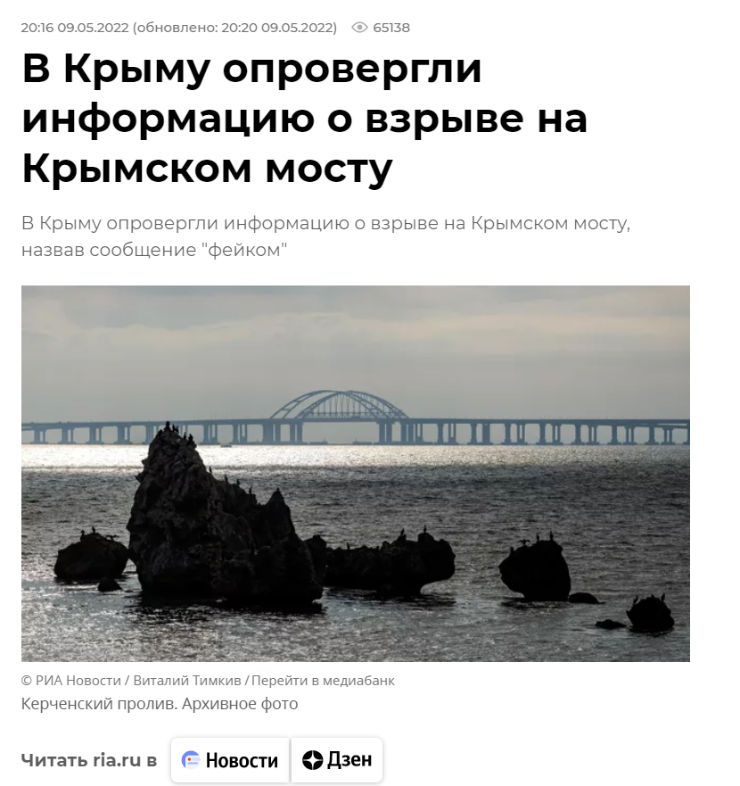 俄新社今年5月辟谣克里米亚大桥爆炸。