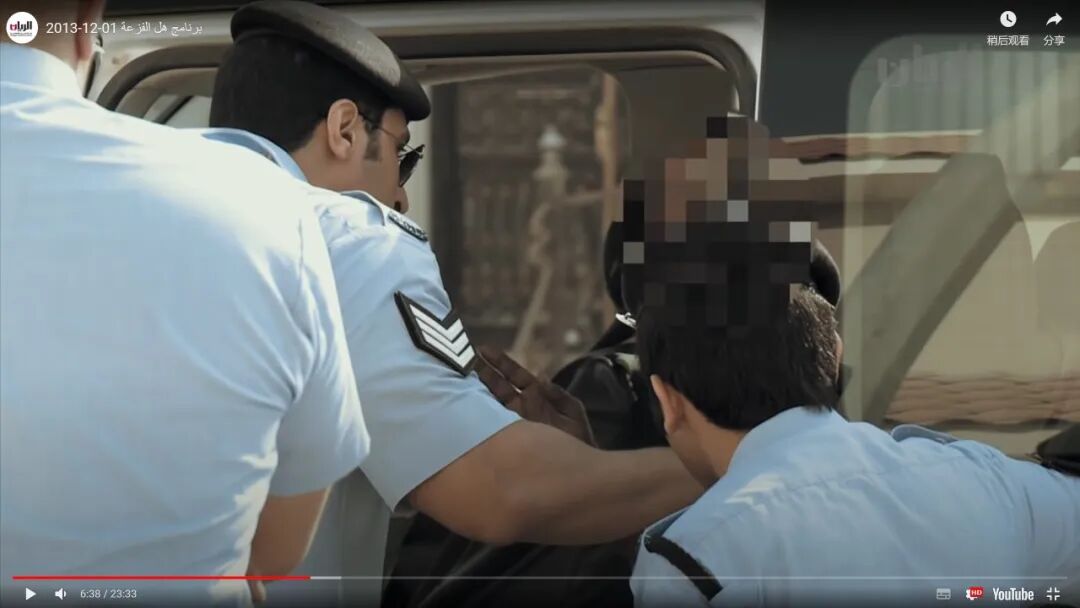 不过,网传视频未必指向世界杯现场安保队。在YouTube检索卡塔尔警察,位于卡塔尔卢萨尔市的电视台Alrayyan TV于2013年12月1日发布的节目中出现的卡塔尔警察所穿制服款式与网传视频基本一致,画面显示其制服包含贝雷帽,警衔则位于袖标处且臂膀部分无其他警徽。最关键的是,该视频中第6分38秒处的画面与网传视频完全一致,只是没有进行模糊处理。