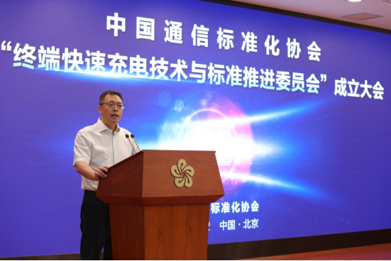 2022年7月22日,中国通信标准化协会(CCSA)召开终端快速充电技术与标准推进委员会(TC626)成立大会。工业和信息化部信息通信管理局一级巡视员王鹏、中国通信标准化协会理事长闻库、电信终端产业协会秘书长/中国通信标准化协会TC626主席谢毅出席会议并致辞。