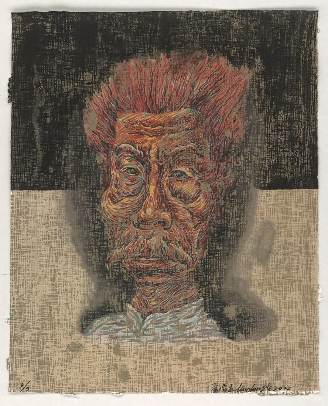 因为鲁迅在20世纪中国的历史性意义和重要影响,其面容成了革命史和文学史的一个固定符号。刘春杰抓住了这张标志性的脸,动用多样媒介和多样创作方式,雕之刻之凿之,也配以“私想”系列文字。他的鲁迅图像十分多样,不无诡异——冷峻、黑沉、张狂、讽喻、热烈、温和、柔情,各种变式和样态。这种变容之术属于艺术的解构,表明这位艺术家是深谙当代艺术策略的。解构不是一味否定和摧毁,而是意义的回溯和重赋,而是重启和创造的前提,因而更是一种实存姿态。
