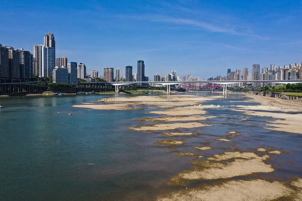 8月17日,嘉陵江重庆段水位明显下降 图片来源:新华社