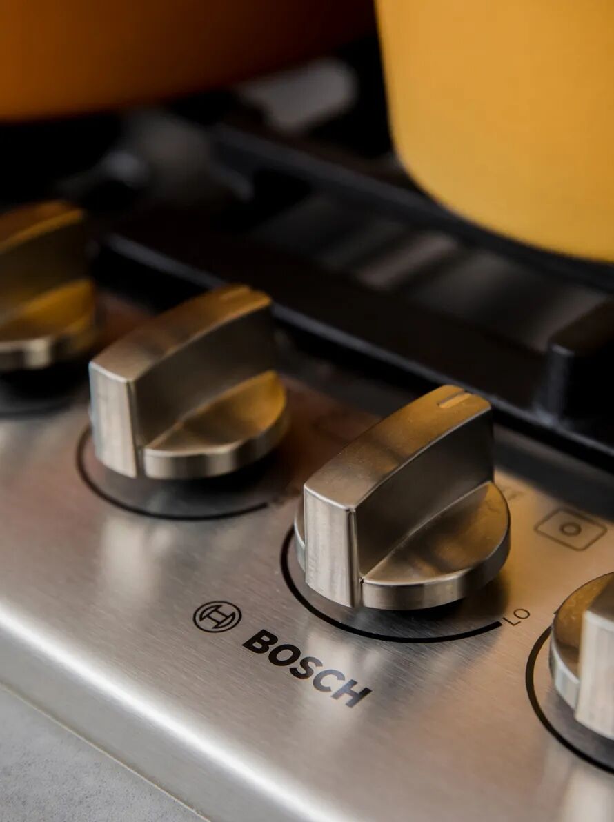 厨房配有豪华压层门板和时尚嵌入式手拉的欧式橱柜,采用凯撒石打造的宽敞厨台、防溅墙,以及瀑布式下沿的岛式橱柜台,宽阔的收纳空间可让厨房整洁干净。欧洲著名家电品牌博世(Bosch)也入驻其中: