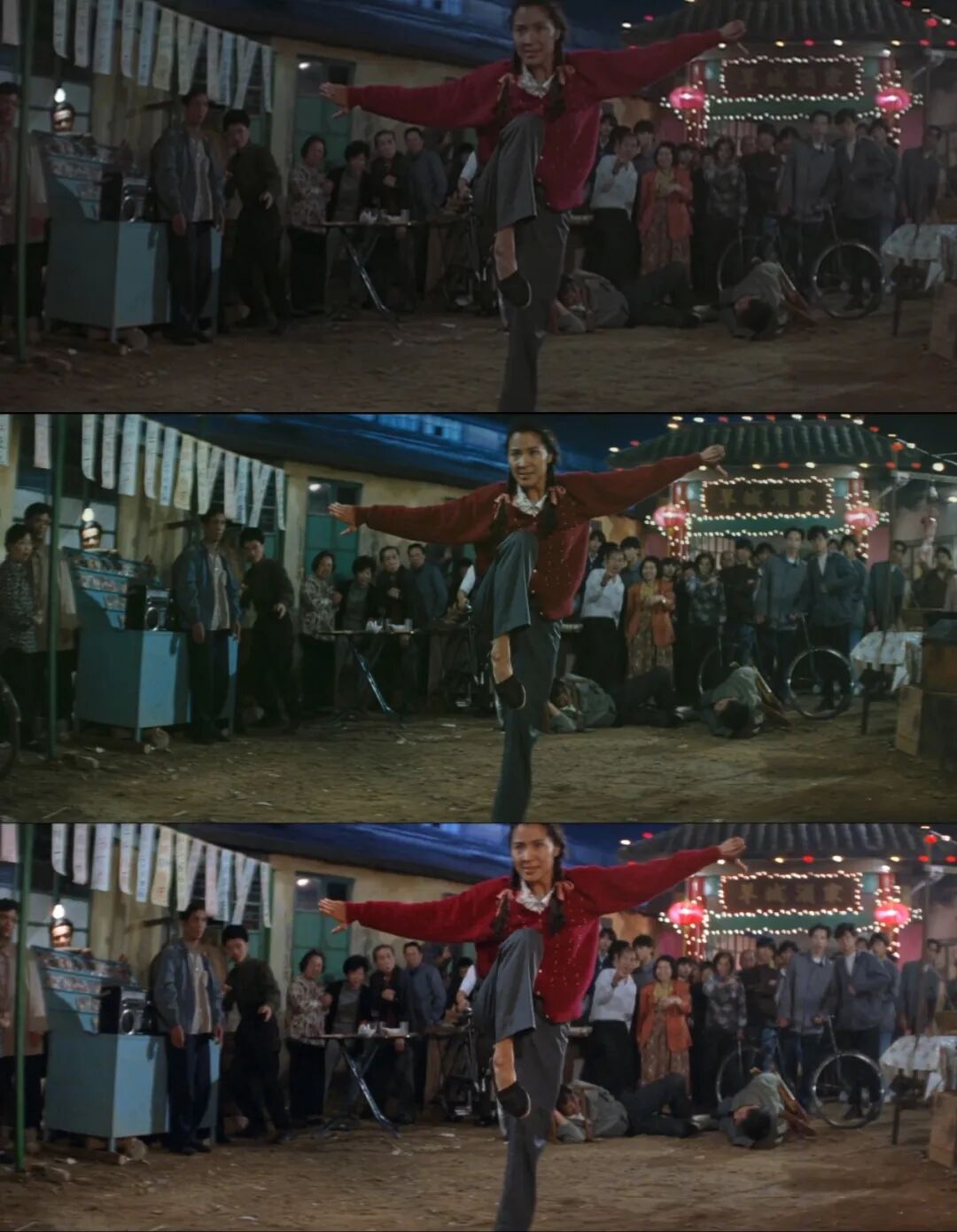 从上往下,分别是最早用了标清修复源放大的港版蓝光、之前的4K修复以及此次尤里卡新的4K修复。