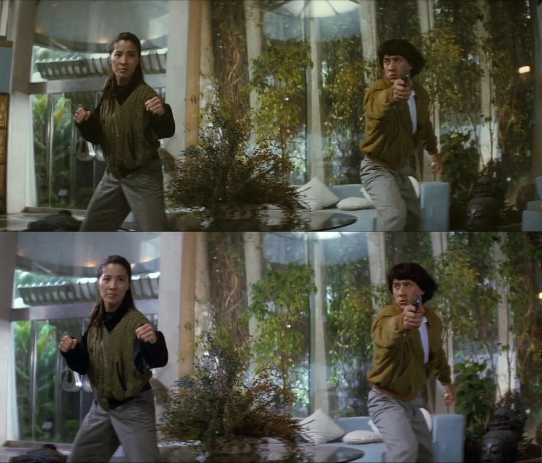 之前尤里卡和CC的《警察故事》前两部套装已经在可以触及的范围内试图做到最好了,此次尤里卡终于把第三部版权攻克下来的同时,各位碟友最关心的应该就是之前三部4K修复的瑕疵是否能进一步改进。从配置来看,首先第二部依旧遗憾只能以并不是质量最好的加长版来进行4K呈现,但是此次原始香港版依旧作为花絮额外收录,而且相较于之前尤里卡的标清版收录和CC版内嵌中英字幕的35mm放映拷贝扫描来说更进了一部,此次将通过现有最好素材完整重构出一个1080p高清呈现的香港原始版。而尤里卡是否会对三片的4K修复重新校色也成为大家关注点之一。