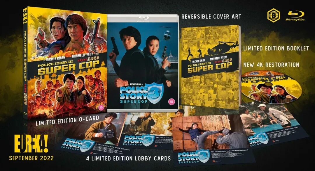 这次套装中最重磅的第三部《警察故事3:超级警察》源自尤里卡出资进行的全新4K修复,呈现的是96分钟的原始香港版正片,此次同期也单独发行普通蓝光版。音轨上带了原始粤语的无损单声道轨、此次全新制作混音的杜比全景声轨还有英语配音轨,同时这个新修复也配上了同样人员的两条全新评论音轨。除去此版外,91分钟的北美发行版也以1080p规格收录,携带粤语音轨以及一条成龙与杨紫琼本人配音自己角色的英语配音轨。