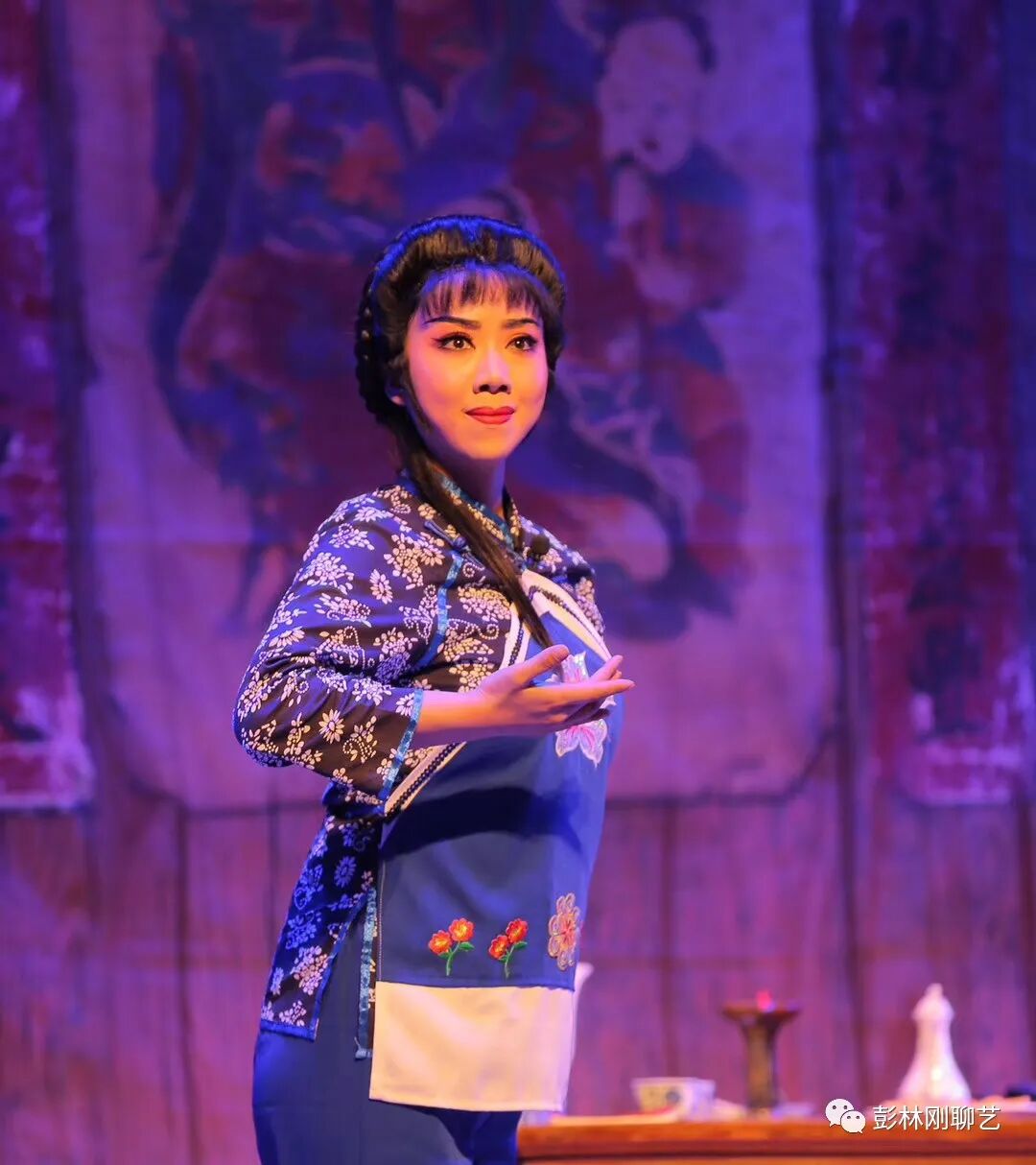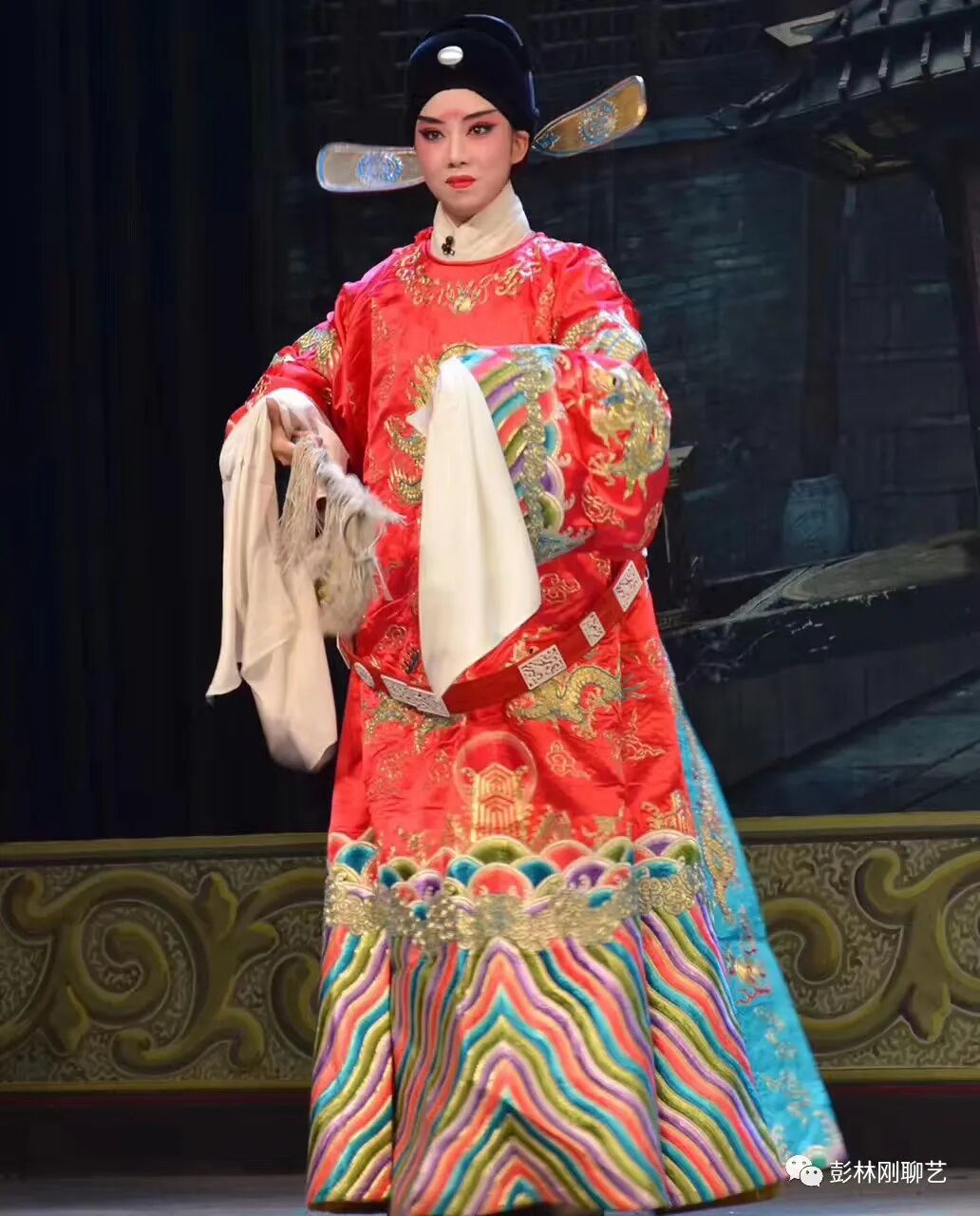 果然,她饰演的李后一个出场,双目失明、蓬头垢面,虽老态⻰钟,但不失皇家优雅的人物气质,立即迎来观众的一个“碰头好”。而李后头段[⻄皮梳妆台]唱腔,唱的是满弓满调,伊始就把观众唱的热血沸腾,特别是最后驰名剧坛的[堆字大陆板],唱出“高派”气势与神韵,掌声经久不息。