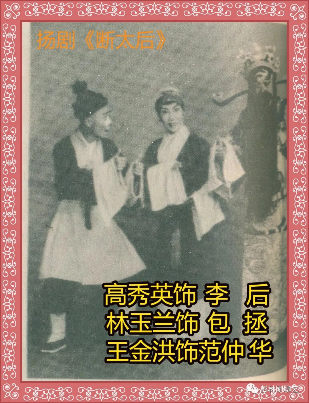 1962年江苏省扬剧团根据国家文化指导政策,在团内向老艺人作了一次大规模的传统剧目征集、挖掘和整理工作。高秀英、林玉兰、王金洪等老艺人纷纷捐出珍藏多年各类扬剧幕表戏题纲,其中《断太后》引起剧作家袁振奇的兴趣。《断太后》是《狸猫换太子》中一折著名的场次,但扬剧演来故事情节曲折复杂,人物性格饱满丰富,且艺术风格极具个性,完全不同于京剧或是其他任何地方剧种。于是袁振奇在幕表戏题纲的基础上,创作出《断太后》一剧,由高秀英饰李后、林玉兰饰包拯、王金洪饰范仲华。