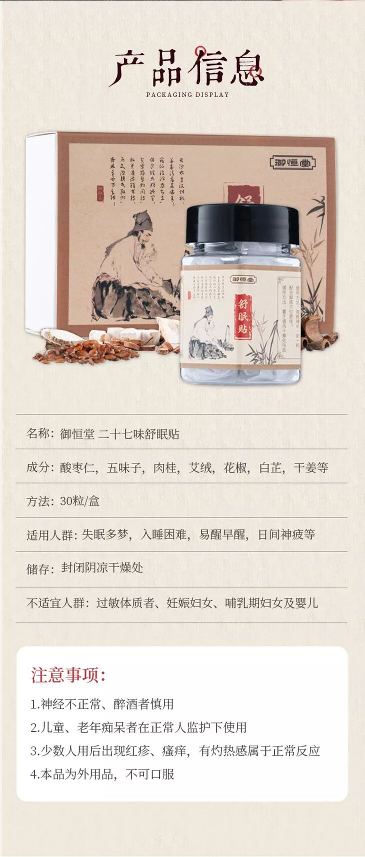 不像安眠药,成分全是西药,肚脐贴由27味纯中草药配置而成,再从生命之穴肚脐进入,药力绵绵不断循环全身,排尽湿气,毒素,垃圾。![]()