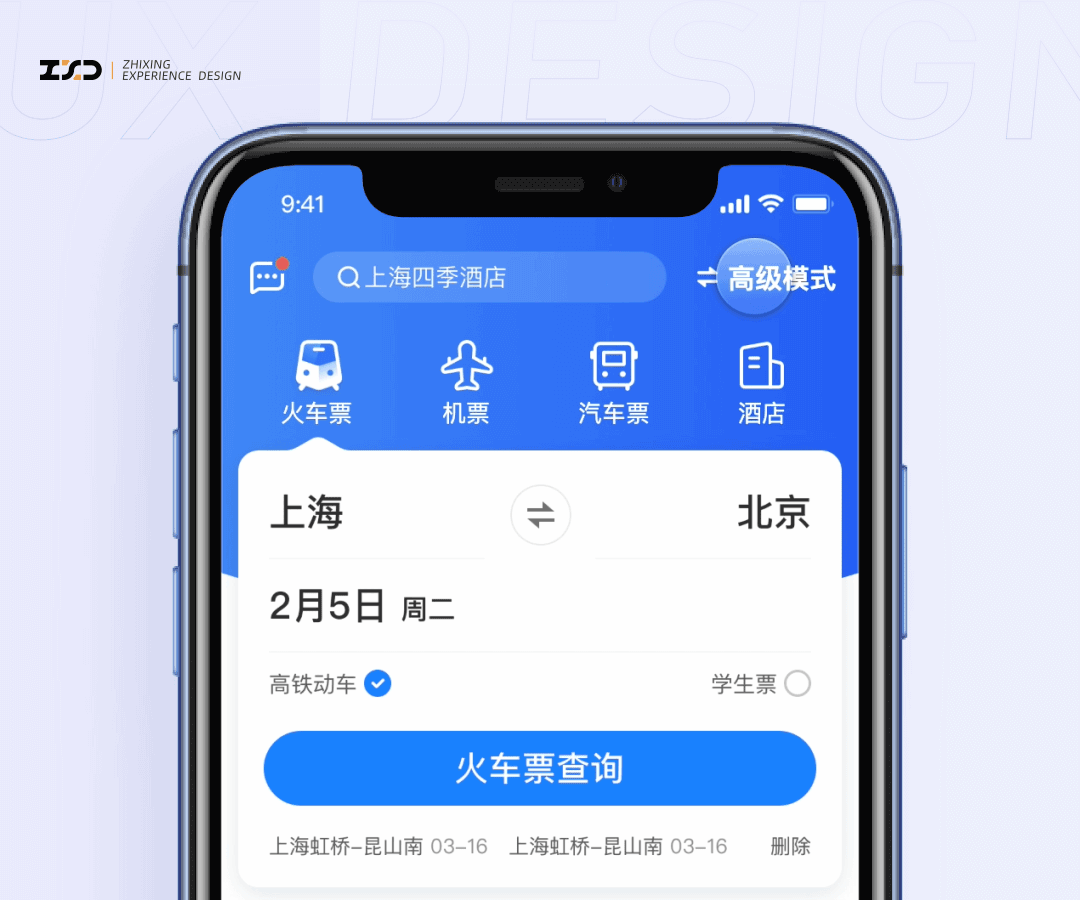 那么既然“智慧出行”是火车、飞机、汽车出行方式的整合,我们就利用动效来传达这个产品特点。